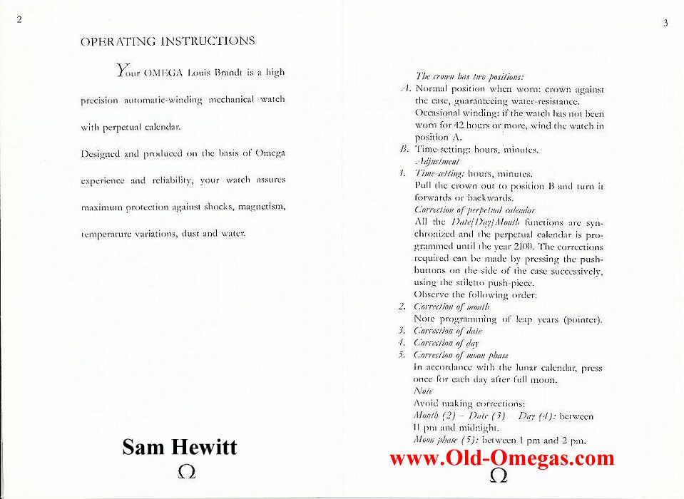 I don't think Omega will have a problem with me reproducing these pages on the internet. They are good enough quality that they can be used, but not so good that people can copy, print & sell them as originals.