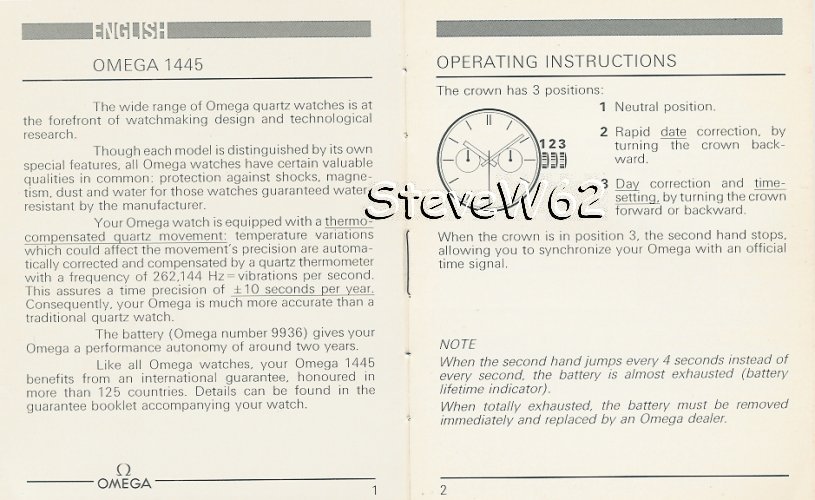 An English Omega Owners Manual for a 1445 movement