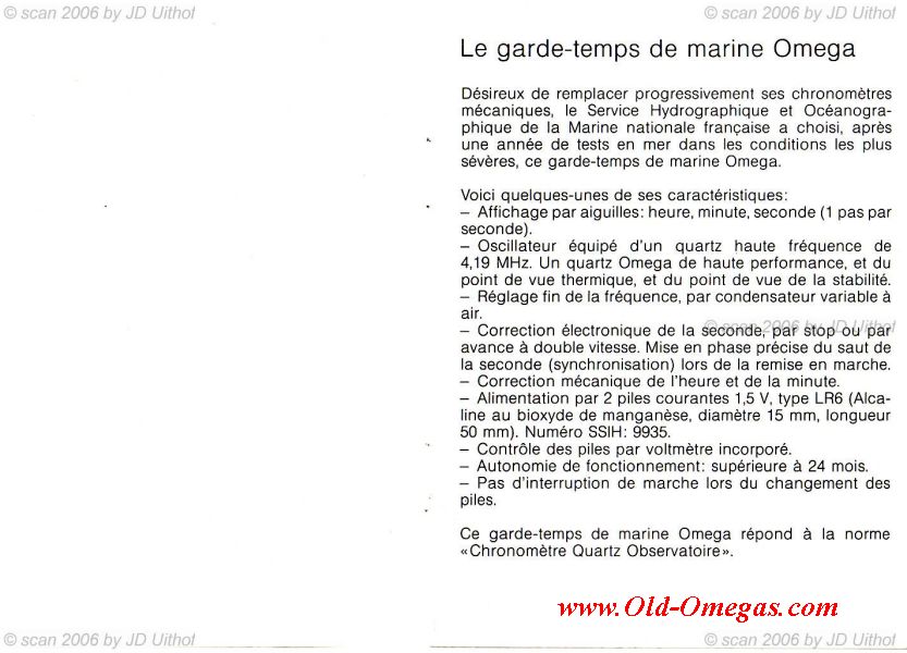 A French Omega Owners Manual for the 1525 Quartz Marine Chronometer Movement