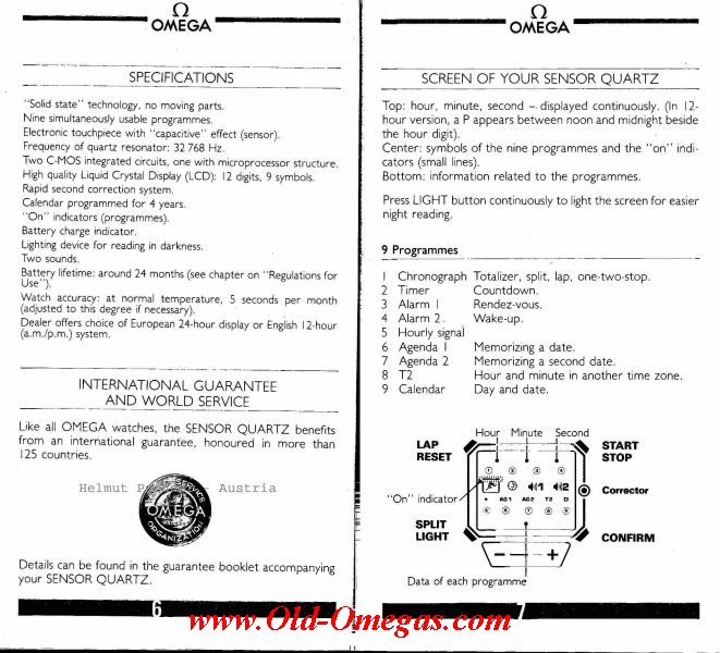 An English Omega Owners Manual for the 1640 Sensorquartz LCD movement