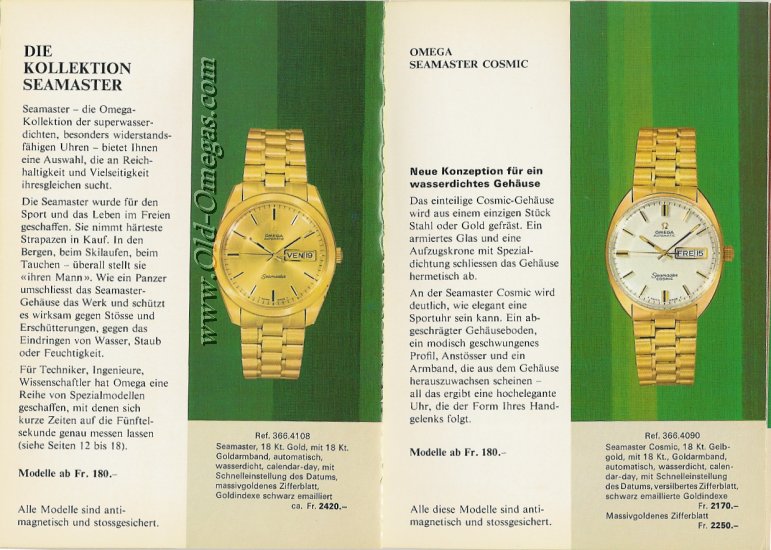 This is a Swiss catalogue , in German. I guess it's from the early 70's / late 60's. It still contains the Seamaster 300.